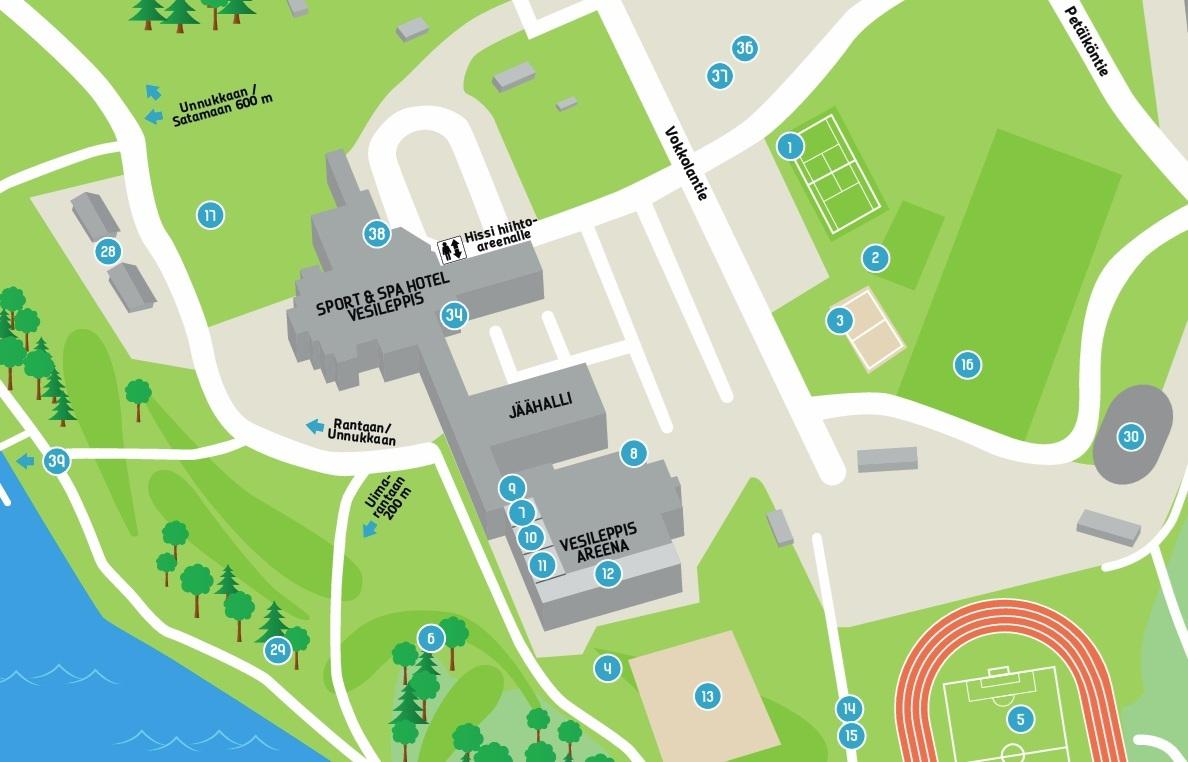 Vokkolan urheilualueen jalkapallo-, tekonurmi-, tennis-, monitoimi-, yleisurheilu ja beach volley -kentät ovat osallistujien hyödynnettävissä mahdollisten muille varattujen vuorojen ulkopuolella. Minigolf- ja frisbeegolf-kentät ovat myös vapaasti käytettävissä.